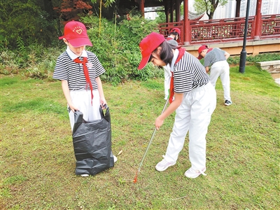 随后,孩子们在叶龙的带领下走进城市中央公园。看着各色的睡莲,还有挺拔的树木,许多孩子围着叶龙问个不停,叶龙耐心为孩子们答疑解惑;公园的另一边,还有许多孩子头戴志愿服务帽,手持钳子,化身一位位“城市美容师”,捡拾着地上的落叶和纸屑,守护公园环境。