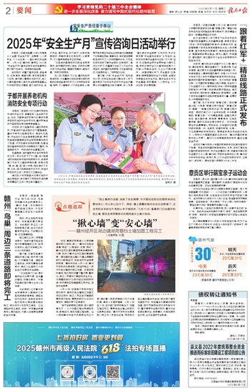 本报讯 (记者刘晓慧)6月15日,赣州市中小学国防教育研学实践暨“跟着红军+”精品线路发布活动在石城阻击战展示园举行,四条精品线路与一批精品课程正式发布。