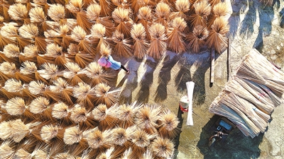 日前,在会昌县周田镇河墩村毛竹加工厂,村民们利用晴好天气晾晒竹丝。近年来,会昌县依托丰富的毛竹资源,大力推进毛竹精深加工,延伸产业链,提升附加值,真正将生态优势转化为经济优势,进一步拓宽群众增收渠道,助推乡村全面振兴。华辛明 摄