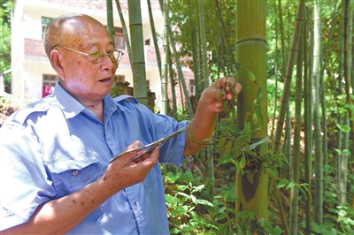 “这个茎秆可用来炖汤,制作药膳,能增强免疫力,安神美容,养生保健功效好。”近日,袁志庚老人带着村民,兴冲冲来到自家的铁皮石斛栽植基地参观。茂林修竹间,一丛丛绿油油的铁皮石斛枝繁叶茂,拔节生长。袁志庚一边手持剪刀,从容采摘成熟的石斛茎秆,一边与身旁的村民攀谈起来。“因为铁皮石斛的药用、药膳价值高,所以民间有九大仙草之首的说法。”据老人介绍,这一批以活竹竹腔为载体的铁皮石斛,今年4月栽植,6月开花,7月下旬开始结果。预示着自创的这种仿野生栽植方式落地见效。